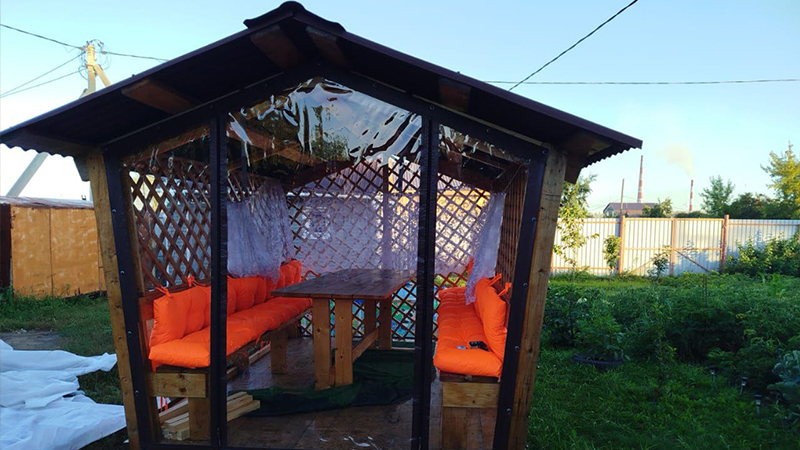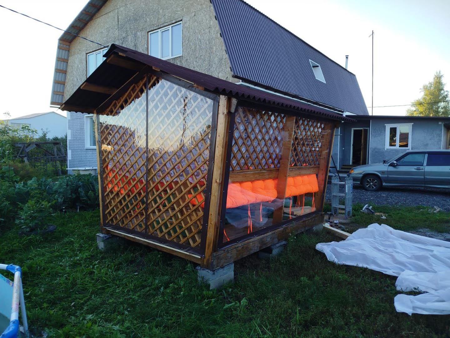 Установка мягких окон на беседку
