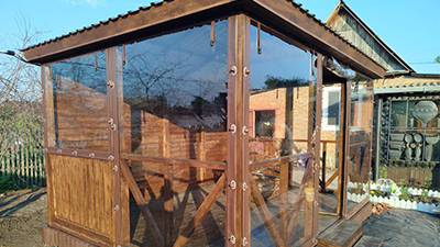 Мы не продаём готовые штампованные изделия, которые не подойдут к вашим проёмам. Наша специализация — мягкие окна на заказ. Каждый проем, каждый столб беседки индивидуален, особенно если строение выполнено из дерева или дикого камня.