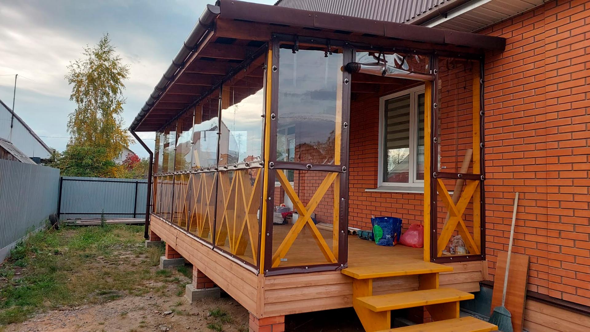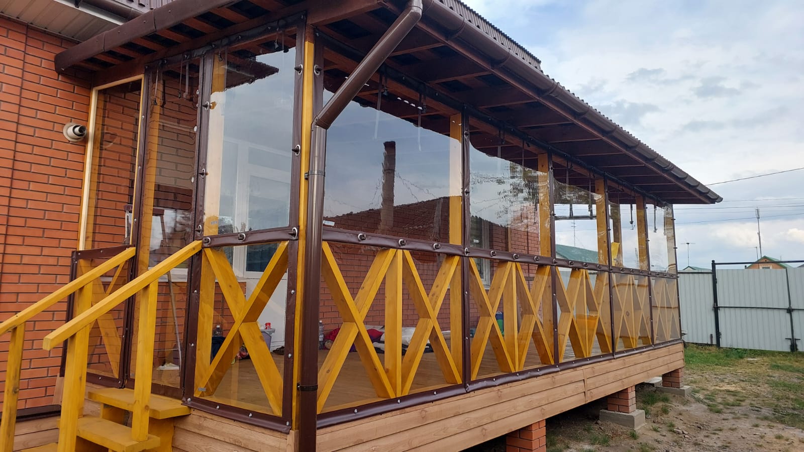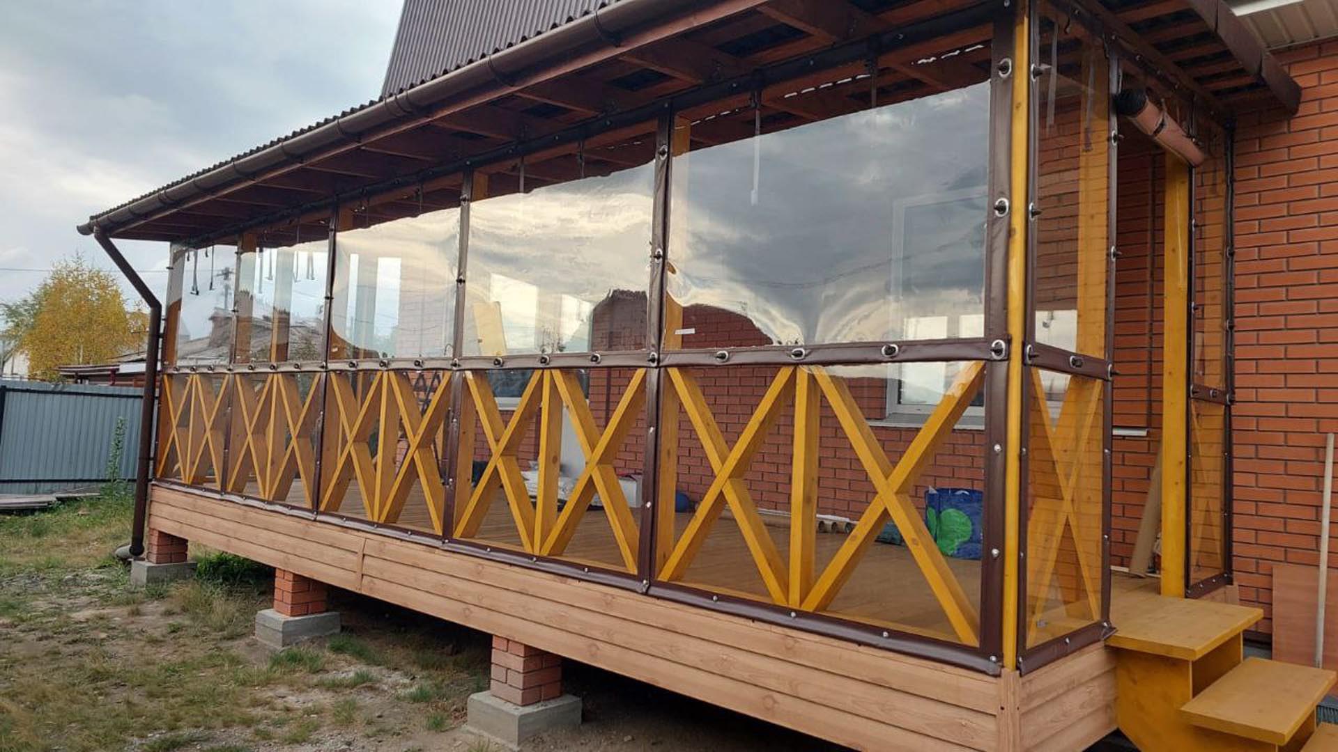 Веранда — это лицо дома. Мягкие окна для веранды в Омске пользуются огромным спросом. Они позволяют превратить открытую продуваемую площадку в полноценную жилую комнату. Установить мягкие окна на веранду — значит защитить мебель и полы от гниения из-за попадания дождя и снега. Летом полотна можно свернуть в рулон и закрепить под козырьком, вернув веранде открытый вид.